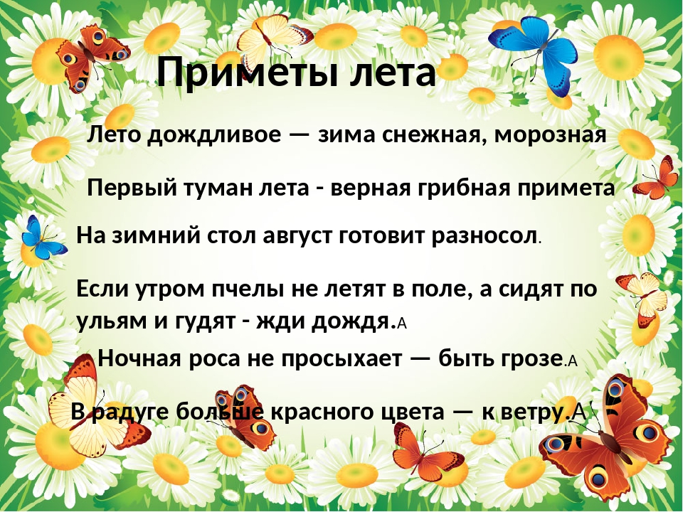 Народные приметы, пословицы и поговорки, возникшие в давние времена, активно живут и в наши дни. Многие приметы со временем приобрели форму пословиц и поговорок. Полная зависимость от природы заставляла земледельца быть тонким наблюдателем, замечать мельчайшие подробности в изменениях природы, улавливать закономерности и связи одних явлений с другими.