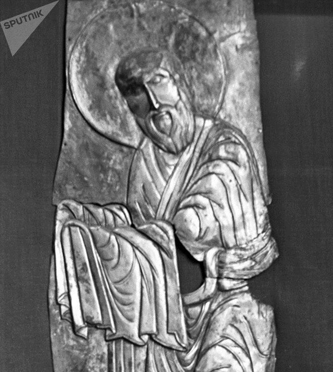 Икона с изображением "Сретение". XII век. Грузинская перегородчатая эмаль