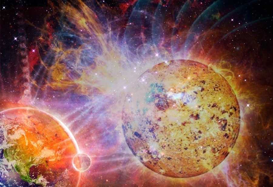 При столкновении происходят быстрые, сильные изменения в поле планеты. Оно искажается, деформируется, пытаясь отразить « атаку», возникают вихревые индукционные потоки. Эти колебания ученые называют магнитной бурей.