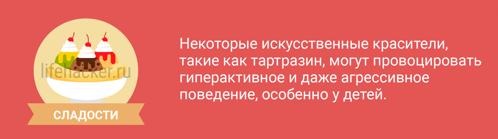 С другой стороны, избыточное потребление сахара и таких добавок, как красители, воздействует на нервную систему и меняет поведение.