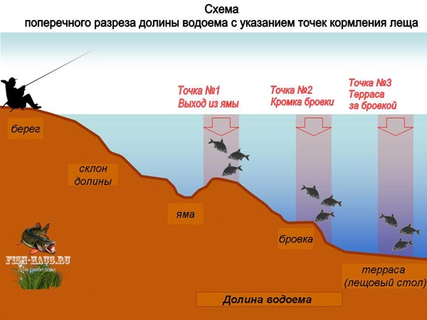 Лещ – осторожная рыба. При ловле данной рыбы в прибрежных ямах, следует особое внимание уделять маскировке, независимо от времени суток. Даже шум от падающей прикормки в первые нескольких десятков минут, может отогнать рыбу от места ловли.