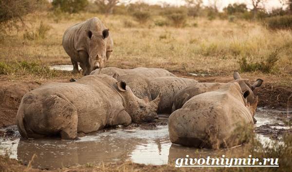 Интересно то, что название черный носорог , как собственно и прозвище белое животное – весьма условные. Потому что оттенок кожи животного зависит от цветовой палитры грунта, покрывающего ту часть земли, где нашли свой кров носороги. Валясь в грязи – любимое занятие носорогов, они пачкают шкуру грязью, засыхая на солнце, она и придает тот или иной оттенок кожным покровам.