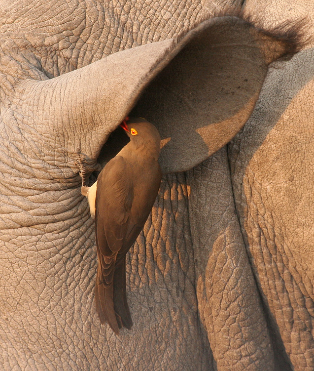 Они все время скачут по туловищу носорога и то и дело занимаются тем, что вытаскивают из складок кровожадных клещей. Наверно, когда это им удается, возникает неприятная боль, потому что животное вскакивает и начинает фыркать, но затем успокаивается и опять плюхается в болото.