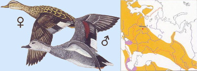 Несколько меньше кряквы; от других речных уток хорошо отличается белым зеркальцем на крыле, заметном на большом расстоянии. Основной тон окраски самцов в брачном наряде — серый, самок и молодых — серо-охристый с пестринами. Голос самца — звонкое покаркивание, самки — трескучее кряканье. Редкий гнездящийся перелетный вид. Населяет пруды рыбхозов, пойменные озера и старицы и другие заросшие водоемы открытых ландшафтов.