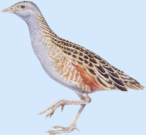 Небольшая, размером с голубя, луговая курочка. Окраска сверху буроватая, с тёмными пестринами, снизу — серая, без пестрин. Горло рыжеватое, на брюхе тёмное подковообразное пятно. У взлетающей птицы бросаются в глаза ярко-рыжие боковые перья хвоста. Самка несколько мельче и бледнее самца. В брачный период самцы издают довольно громкие двусложные выкрики, в остальное время года молчаливы. Перемещается по земле пешком, взлетают неохотно, только при внезапном появлении рядом с ними человека, машины или собаки. Гнездо на земле. Обитает на высокотравных лугах. Размер кладки максимальный для наших птиц; гнёзда содержат от 14 до 24 однотонных оливковых яиц.
