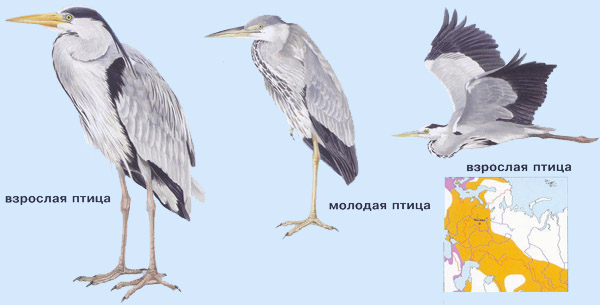 По общему складу похожа на серую цаплю, но заметно мельче и выглядит темнее. Голова, шея и бока груди темно-рыжие, спина серая с рыжеватым оттенком, крылья грязно-серые с темными концами, хохол и полосы на шее черные, брюшко черноватое. Молодые и неполовозрелые желтовато-бурые или бурые с неясными пестринами, концы крыльев темные. Населяет заросшие околоводной растительностью берега водоемов от лесостепи до полупустыни. По сравнению с серой цаплей менее осторожна и реже садится на деревья. От серой цапли отличается более темной окраской и темно-рыжими участками оперения.