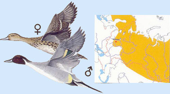 Немного мельче кряквы; от других уток отличается более длинной шеей и длинным заостренным шиловидным хвостом. У самца коричневая голова, резко контрастирующая с белой шеей, серая спина, белое брюхо (у старых бывает желтоватым). Самка серовато-бурая с крупными темными пестринами и плохо различимым серо-коричневым зеркальцем с белой оторочкой по заднему краю крыла. Самка шилохвости, в отличие от самки свиязи, более светлая, серая, 8 ее окраске меньше рыжины; темные пестрины груди постепенно светлеют на брюхе. Молодые окрашены как самки, но темнее. Голос самца — мелодичный свист, самки — негромкое хриплое кряканье.
