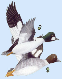Большеголовая утка, заметно мельче кряквы. Самец в брачном оперении белый с чёрными головой, спиной, хвостом и концевыми частями крыльев. На щеках овальные белые пятна. Самка и молодые тёмно-бурые с коричневой головой, белыми зеркальцами на крыльях, узким светлым ошейником и без пятен на щеках. Глаза у взрослых самцов и самок ярко-жёлтые, у молодых - темные. Плавает с опущенным хвостом; при кормежке ныряет и быстро плавает под водой, помогая себе крыльями. С воды взлетает легко. Полет стремительный, маневренный; крылья в полете издают характерный свист. Молчалив, голос - грубое кряканье. Гнездится в дуплах старых деревьев, растущих у водоёмов, охотно занимает искусственные гнездовья. Гнездятся главным образом там, где специально для гоголей развешивают гнездовые ящики. В период пролета отмечается на прудах рыбхозов, торфяных карьерах, разливах крупных рек.