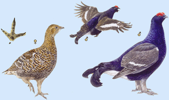 Очень крупная птица, самцы крупнее самок. Окраска самцов серовато-черная, крылья буровато-коричневые, брюшко черное с белыми пятнами. Хвост относительно длинный, закругленный, черный с белым рисунком. Клюв массивный, светлый. Самки значительно мельче, буровато-рыжие с темным струйчатым рису-нокм (рябью). Обитатель хвойных лесов, преимущественно сосновых. Оседлая птица, пар не образует. Весной самцы собираются на поросших сосной моховых болотах или по борам, где токуют, издавая негромкие, трудно передаваемые словами звуки. Зимой нередко сбивается в небольшие стаи. От тетерева отличается значительно более крупными размерами.