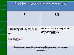 «Буквы ч и щ в суффиксе существительных -чик (-щик)»