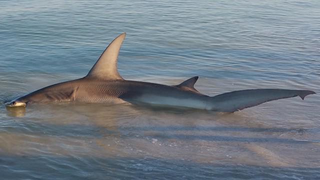 Средняя длина тела - 1,5–1,8 м, а масса - 45 кг. Форма тела торпедообразная и обтекаемая, голова слегка уплощенная. Отличительный признак вида - черный конец первого спинного плавника.