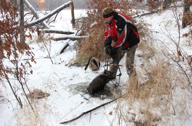 В нашей стране охота на бобра разрешена зимой и осенью. Понятно, что нырять за добычей в такое время года мало удовольствия. Нужно выбирать такое место, чтобы тушка за что-то зацепилась – стрелять перед сваленным деревом, водными растениями, корягами. Хорошо приготовить длинную палку, чтобы достать из воды добычу.