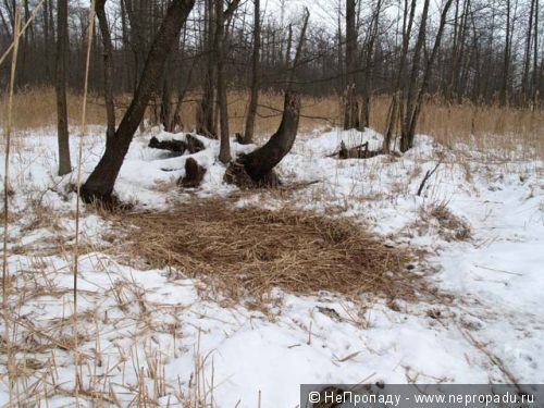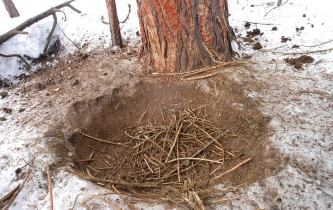 В зимнее время дикие кабаны днем редко выбираются на кормежку, но чаще делают это в ночное время суток. Свои места дневки свиньи устраивают под большими елями и на муравейниках так, чтобы было недалеко идти к кормушке (рисунок 3). Также зимой кабаны любят купаться, и мороз им не страшен.