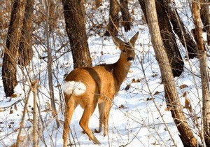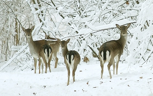 С первым снегом питание косули значительно осложняется. Они перебираются в места где выпало минимальное количество осадков, чтобы поживиться сухой травой, мхом и желудями