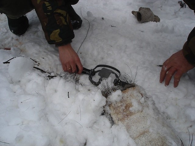Капканы подготовить надо заранее. Они не должны иметь человеческого запаха. Для этого их нужно прочистить, как следует прокипятить и хранить желательно в мешке. Класть в него ничего не нужно и брать следует только в специальных перчатках.