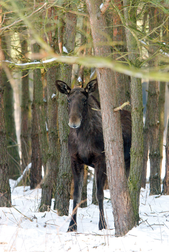 />Надежда говорит:Лось, несомненно, самый большой из всех оленей. Он достигает двух метров в холке, трех — в длину, а весит до полутонны. При таких габаритах он обладает слухом не хуже, чем у мыши. Уловив любой подозрительный звук, лось замирает и пытается разглядеть источник необычного шума. Зрение, кстати, у лося развито плохо (как и обоняние), но в лесу, где обитает сохатый, это вряд ли можно считать серьезным недостатком: стволы деревьев и кустарники все равно ограничивают видимую область сотней метров. Лоси редко ходят поодиночке, обычно они сбиваются в группы до пяти особей. Лоси травоядны, зимой обгрызают кору и в любое время года любят полакомиться грибами. Убийство лося без лицензии преследуется как браконьерство. Цель, которую обычно преследует охотник, либо сугубо прагматическая (добыть разом сотни килограммов мяса), либо являет собой желание потешить чувство собственного превосходства, став обладателем особо ветвистых рогов, прибитых к стене.