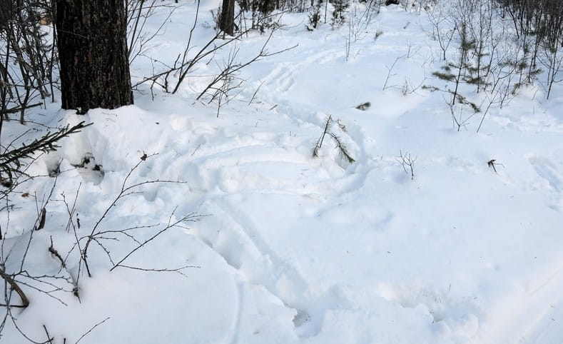 Холмики снега по кромке следа называются выволока, и именно они определяют направление движения. Идти необходимо туда, куда указывает выволока. С противоположной части отпечатка — поволока. Она более пологая, чем выволока. Теперь следует определить характер следа. Если между отпечатками вы видите борозды, словно лось «чиркал» ногой по снегу – это гонный след. Тропить его бесперспективно.