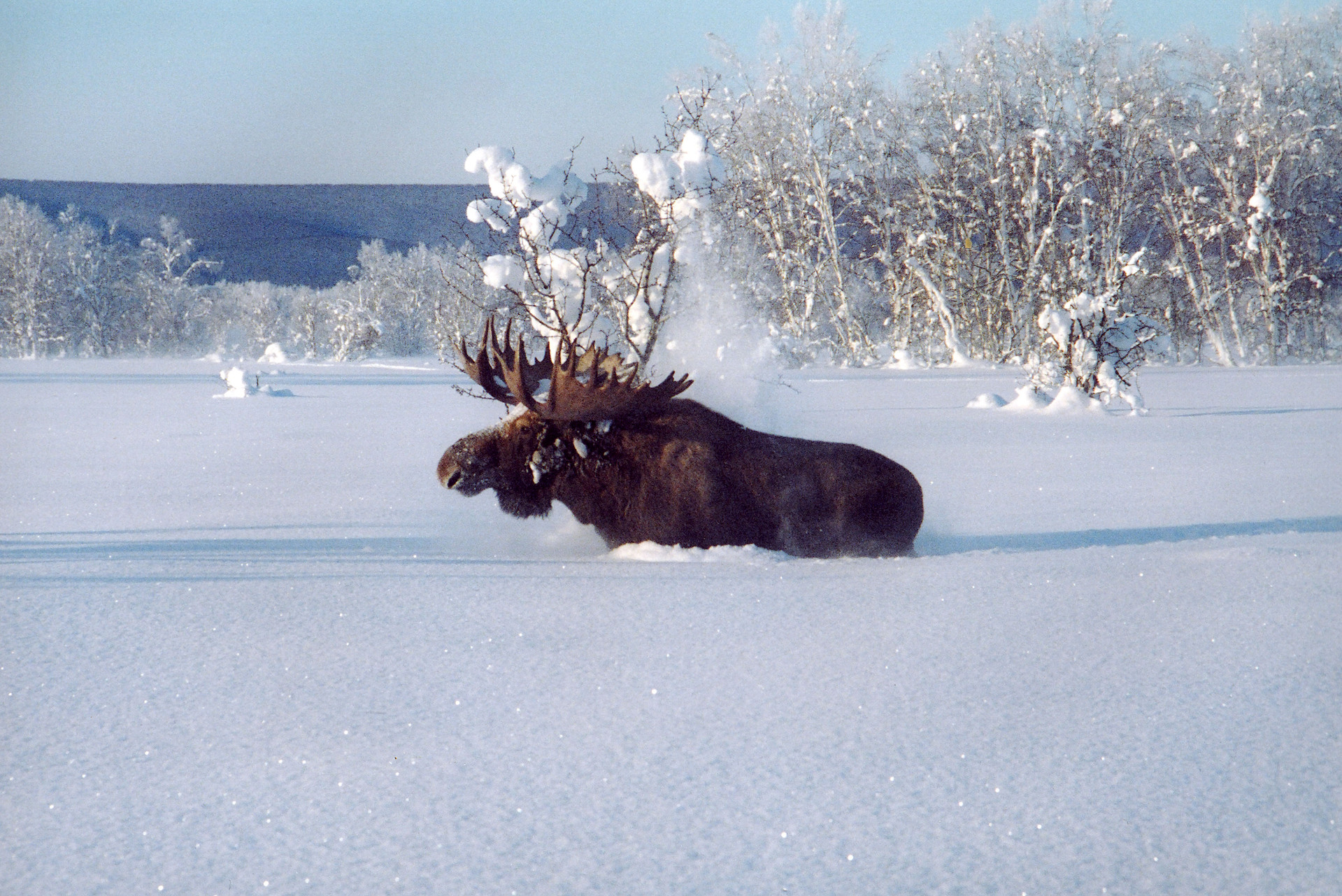 Нужно учесть, что животные при большом снеге становятся неуклюжими и уловимыми. Его ноги вязнут, он становится медлительным и быстро утомляется. В этом случае можно охотиться и без собаки. Хотя если прибегнуть к помощи собаки, или других охотников (нескольких сразу), можно справиться с целым стадом лосей. Но при условии, что охотники будут действовать одновременно, чтобы при выстреле в одного, другие животные не разбежались.