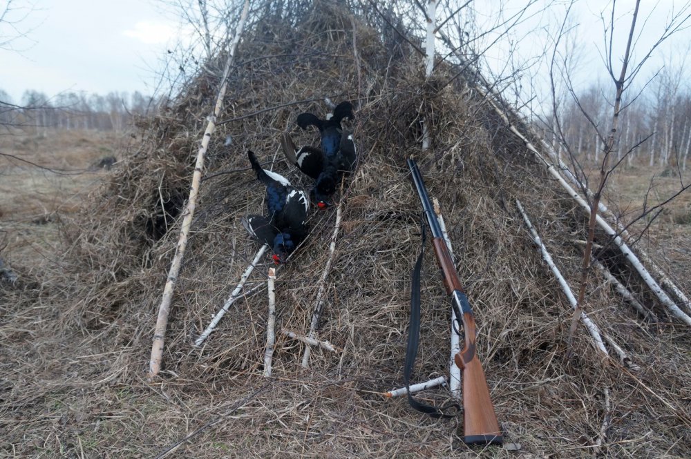 Поэтому логичнее стрелять по птицам их шалаша. Выстрел производится сразу после того, как станет достаточно светло. Позицию же охотник обязан занять еще до начала токования. В месте засидки устанавливается шалаш, позволяющий прятаться в нем и производить точные выстрелы.