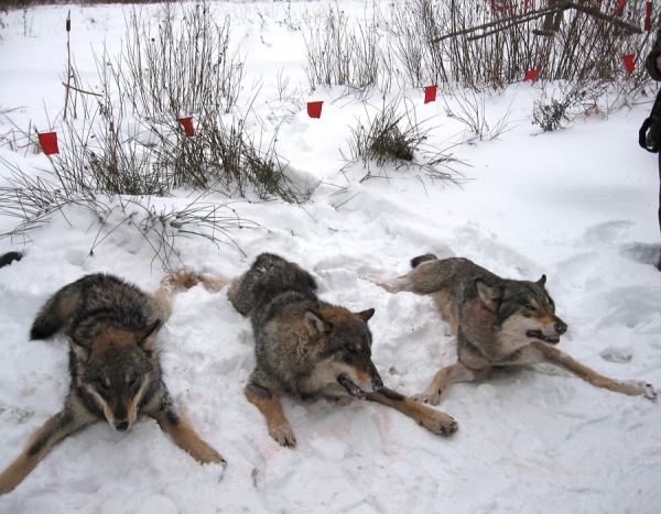 Как приманку можно использовать мясо животных, которые умерли от болезни (не заразной) и отходы мясной промышленности. Приваду на волка нужно делать обильной, так как подозрительно маленькие приманки волк обходит стороной.
