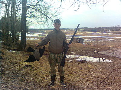 Во втором гнезде курица свалила, не подпустив меня, и больше в моем присутствии так и не вернулась. Я ее достал через несколько дней уже после тетеревиной охоты на току, когда в дождь со снегом она отказалась вылетать с гнезда (думаю Петрос помнит то утро , 1 мая если я не ошибаюсь). Вот тут ее Степан (который 100РОЖ, бывший у меня в гостях) и прострелил прямо в гнезде. Все это происходило в присутствии егеря. Его восхищению не было предела.