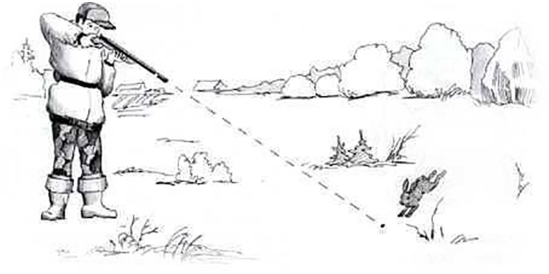 Точка прицела зависит от положения зайца относительно охотника. Убегающего при прицеле закрывают стволом, встречного целят под передние лапы, а бегущего сбоку – прямо перед грудью.