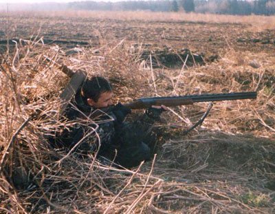 Чтобы для своего ружья найти патрон, дающий хорошую кучность, охотник должен немало поработать. Во-первых, следует подобрать для ствола согласованную дробь, дающую наилучшую кучность из стандартно снаряженного патрона. Во-вторых, найти такое соотношение веса пороха и дроби, которое при достаточной резкости дает лучшую кучность. После чего, применяя контейнеры и крахмал, и снаряжают патроны для дальнего боя, которые из хорошего ружья дают кучность под сто процентов. Таким патроном бьют русака, бегущего боком, на 60-70 метров, беря упреждение в три-четыре корпуса зайца. При стрельбе с классической дистанции 35-40 метров упреждение вдвое меньше. Убегающего по прямой линии русака выцеливают по ушам, бегущего навстречу - по передним лапам.