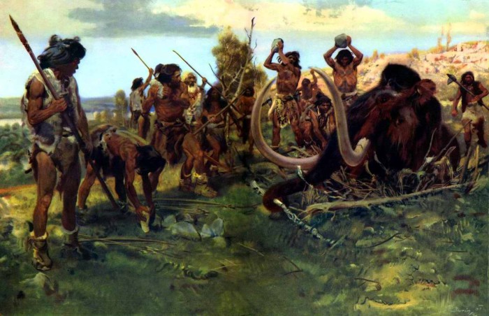 Фото: Охота первобытных людей на бизонов. Видео: 10 Охота на мамонта в Прииртышье Как охотились древние люди
