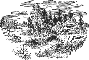 Нередко так удается взять несколько рассевшихся тетеревов. После этого бывалая лайка всегда возвращается на то место, где был поднят выводок, находит оставшихся тетеревов и чаше всего поодиночке поднимает их, сажает и облаивает.