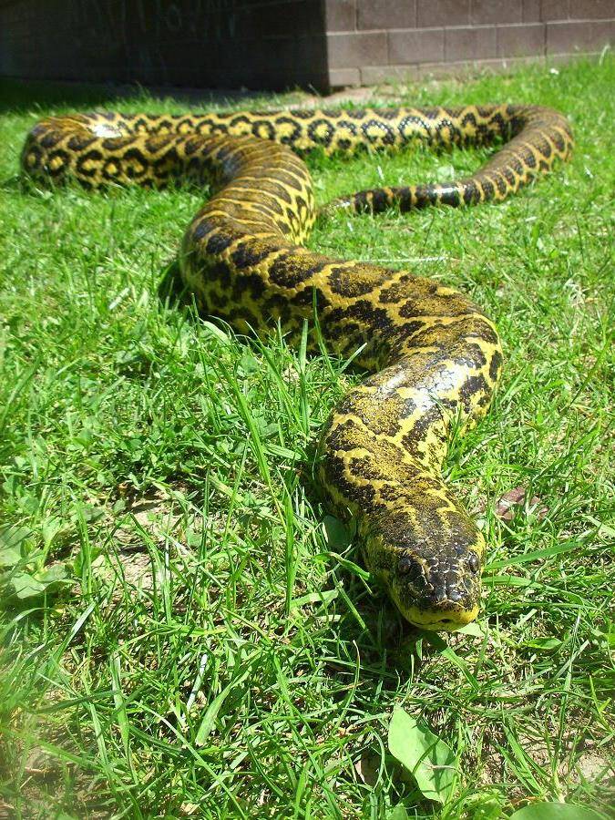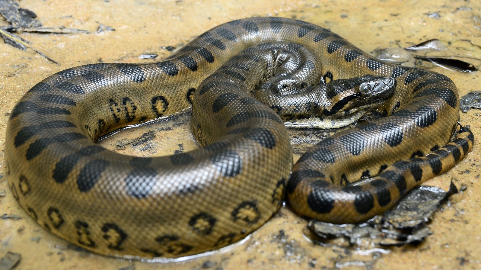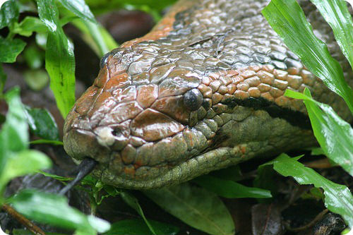 Зеленая гигантская анаконда обитает в Южной Америке. Такое название змея получила за свои размеры, колеблющиеся от 5 до 9 метров. Самая крупная анаконда имела по достоверным источникам 11,43 метров длины.