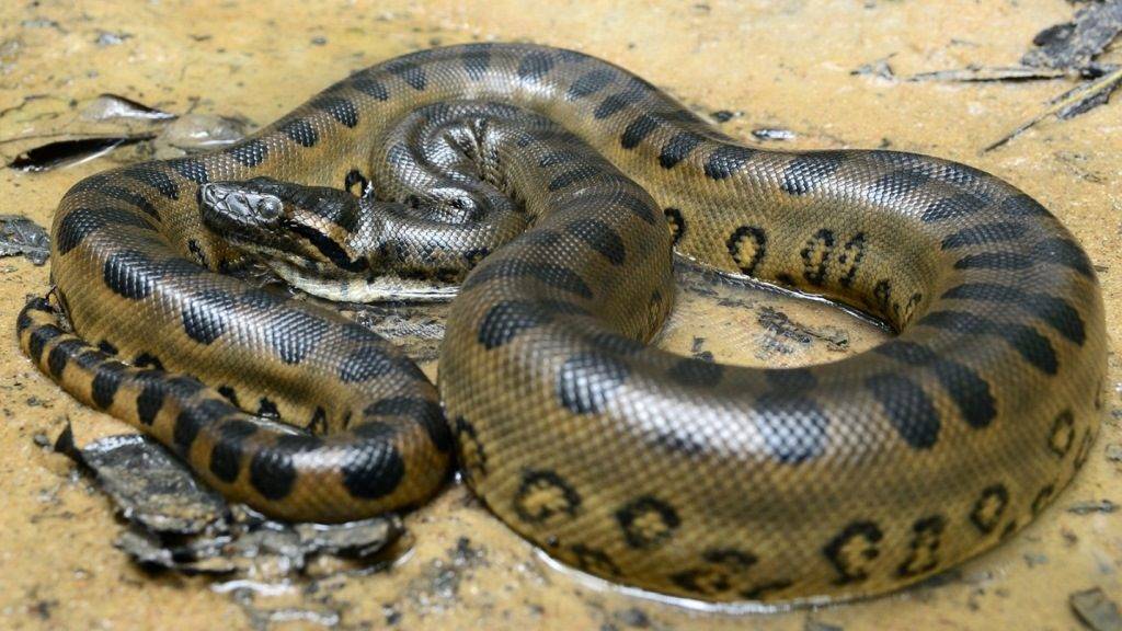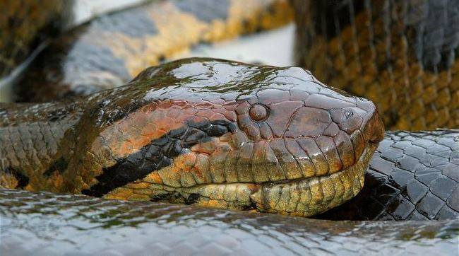 Анаконда Южной Америки – самая крупная в мире змея семейства удавовых. При встрече с ней у человека холодеет кровь и появляется парализующий члены страх. Сильное извивающееся тело змеи способно задушить любого, кто стоит у нее на пути, даже взрослого быка. И неудивительно, самая длинная змея в мире может сравниться с автобусом. Ее вес, в отдельных случаях, достигает массы трех взрослых мужчин.