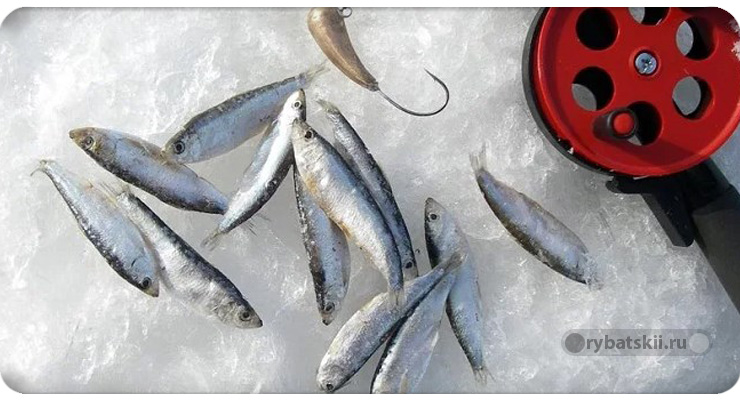 Из особенности снастей для зимней рыбалки на этот вид можно отметить следующее: если вид удочки не важен, то диаметр лески сказывается на поклёвках. Чем леска толще, тем поклёвок меньше. Обычно выбирается прозрачная леска, толщина которой от 01 мм до 0,3 мм. Длина лески берётся с запасом. Единственное пожелание, берите удочку с катушкой.