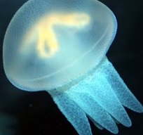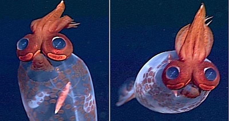 Этот смешной зверёк вовсе не звёрек - это планктонный кальмар, живущий на самом дне океана. Этих кальмаров также называют кальмары-какаду, у них огромные глаза и небольшой хохолок на голове. Питаются они в основном мелкой рыбой, которую ловят развитыми и сильными щупальцами. В длину кальмары-какаду достигают около пяти сантиметров.