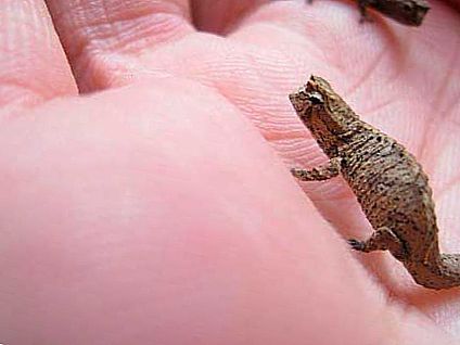 Необычный даже среди хамелеонов - Брукезия малая (Brookesia minima ) или карликовый листовой хамелеон. Он, без сомнения, является одной из самых маленьких рептилий, известных человеку.