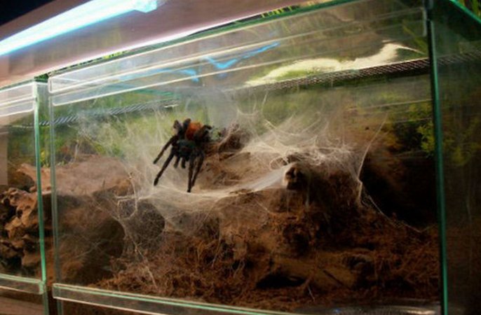 Обычно для содержания пауков используются стеклянные или пластиковые террариумы с хорошей герметизацией. Они могут быть горизонтального и вертикального типа: первые подходят для наземных пауков, а для древесных видов необходим вертикальный тип жилища с эффективной вентиляцией. Поэтому очень важно знать вид вашего питомца, чтобы максимально точно воссоздать для него природные условия.