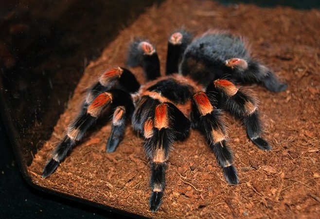 Мексиканский красноколенный паук-птицеед привлекает заводчиков большим размером, яркой окраской, спокойным нравом. Срок жизни составляет около 30 лет.