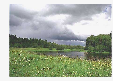 На снимке показан весенний пруд в благоприятную для клева рыбы погоду, но при условии, если изменения показаний атмосферного давления барометром в течение двух-трех последних суток были очень незначительны.