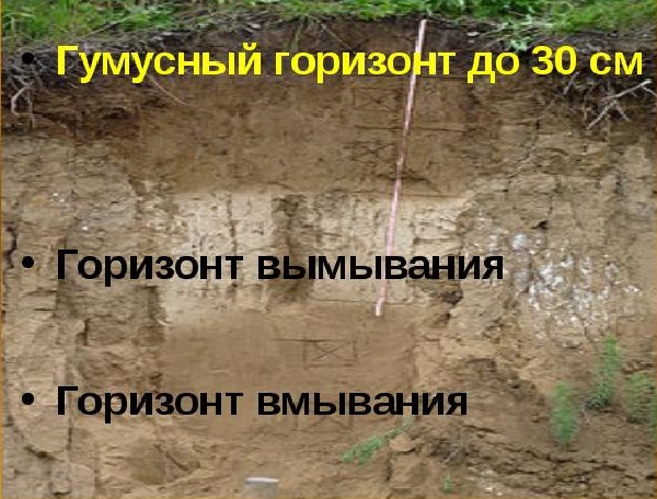 Гумус с органическими веществами являются главными составляющими дерново-подзолистой почвы. Сверху почва покрыта растительным покровом, различными травами, мхами. Рельеф и свойства поверхностных горных пород могут оказывать значительное влияние на внутреннюю структуру растительного покрова.