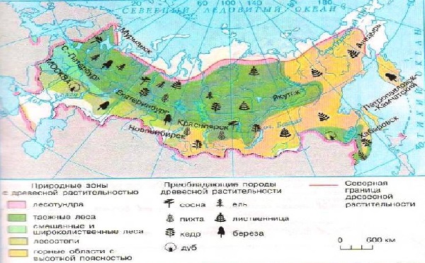 Карта лесистости территории России в %