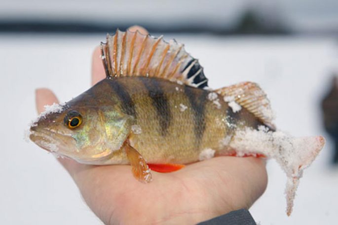 Не секрет, то окунь является самой активной рыбой в зимнее время и основная масса улова приходиться именно на этот вид рыбы. На активный клев окуня можно рассчитывать в тихую морозную погоду в условиях стабильности атмосферного давления. Неплохой вариант – это оттепель после затяжных морозных дней. В подобных условиях этого вездесущего хищника можно ловить на протяжении всего светового дня. Когда на улице наблюдаются обильные снегопады, выезжать на рыбалку, с надеждой поймать окуня, не следует.