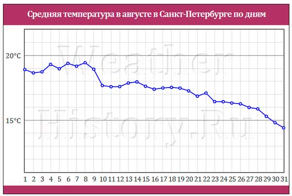 Рис.11. График среднесуточных температур в августе для Москвы и СПб.