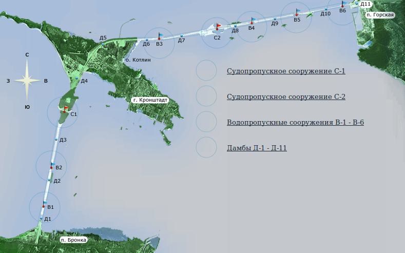 Дамба Финского залива – сложное гидротехническое сооружение, основным предназначением которого является защита Санкт-Петербурга от наводнений. Здесь проходит дорога, соединяющая Питер и Кронштадт. На дамбе длиной почти 24.5 км предусмотрено четыре моста с затворами-пропускниками, которые пропускают воду, а вместе с ней и рыбу, каждый год идущую на нерест из Финского залива в Неву .