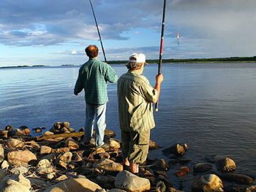 Рыбалка на дамбе может производиться и с берега, и на лодке, можно ловить с высоких парапетов возле пропускников, там попадается крупный судак и окунь, но охрана дамбы часто выгоняет или не пускает туда рыбаков.