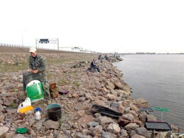 Рыбу можно ловить как на входе воды, так и на выходе, но опытные рыболовы утверждают, что на входе клев лучше. При ловле рыбы на дамбе, вам не обойтись без подсачника, так как крупную рыбу очень трудно вытащить на берег через груду камней из которой и состоит весь берег дамбы.