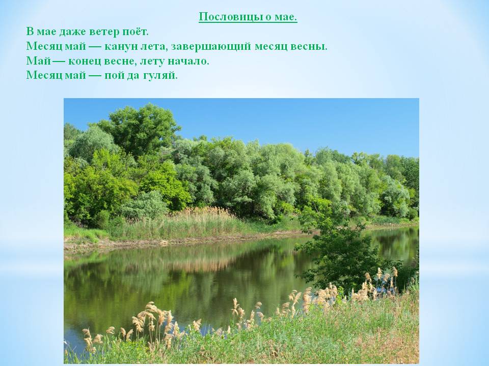 - Май леса наряжает, лето в гости ожидает (приглашает).