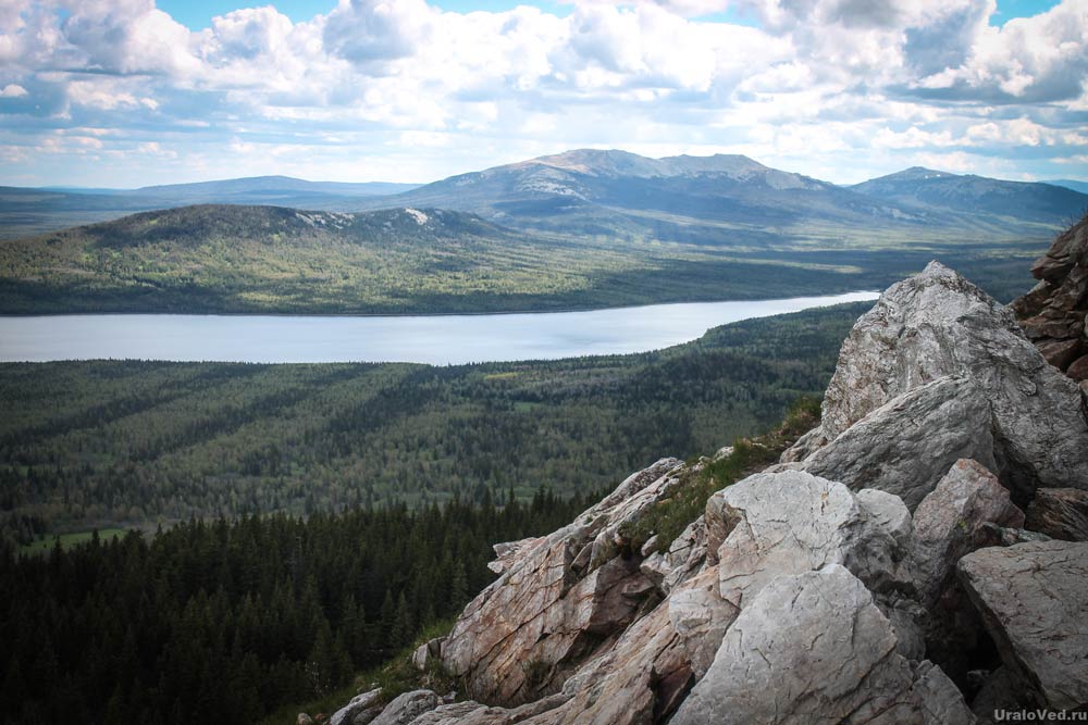 Вид на озеро с вершины хребта Зюраткуль