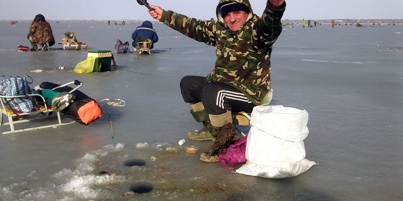Раннее утро на лимане напоминает час пик в городе, когда тысячи людей спешат на работу. Здесь движение почти такое же, только цель все преследуют другую. Рыболовы массово выходят на лёд из разных посёлков, расположенных вдоль всего побережья лимана, и двигаются к его центру. Идут и едут, поодиночке и большими группами: пешком, на мотоциклах, автомобилях, кто и вовсе на каких-нибудь диковинных средствах передвижения (чудаков хватает!). Бодро маршируют с санками, пластиковыми корытами, непонятными тазами – грохот стоит такой, что удивляешься: как в таком шуме рыба может клевать?