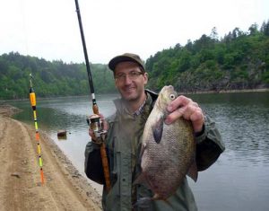 На реке в тихих заливах можно отыскать леща, он находится на границе между течением и стоячей водой. Агрессивность рыбы учитывается при выборе лески для удочки. Она не должна быть больше 0,25 миллиметров. А крючок надо брать средней толщины, но надежный, крепкий.