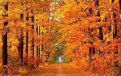 Октябрь — золотая пора осени. Деревья в этом месяце сбрасывают пожелтевшую листву, которая багрово-желтым ковром укрывает землю. На улице тепло, заморозки беспокоят редко.