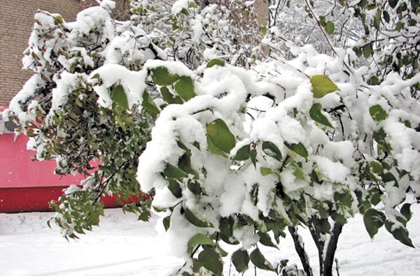 Снег выпал, а на вишнях листья - долго снег не пролежит.